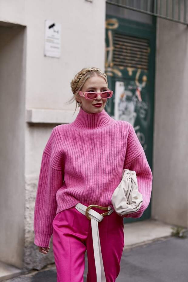 Оверсайз свитер будет смотреться стильно и с кожаными брюками, и с высокими сапогами. Дополни образ массивными украшениями.